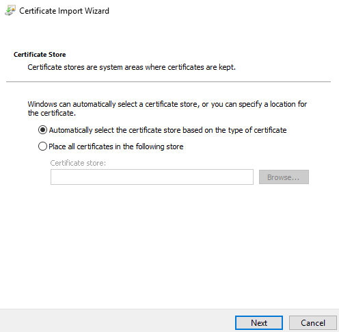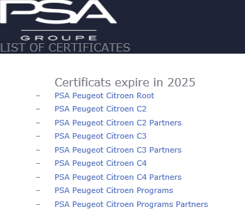 Except for "PSA Peugeot Citroen Root" choose "Place all certificates in the following store"